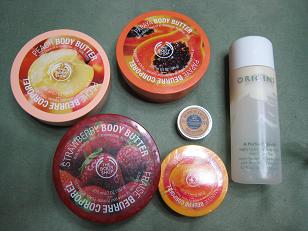 大きい丸い入物は BODY SHOP が出しているクリームです。