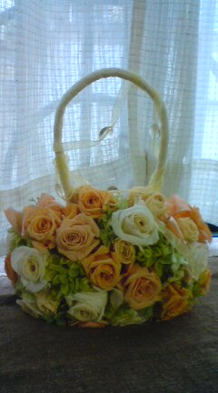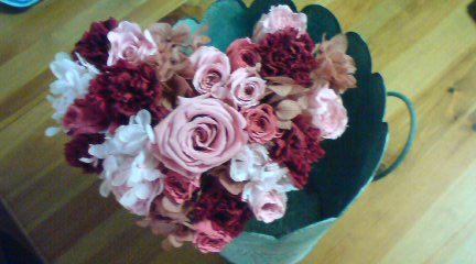 で、早速作ってきたハート型のブーケ(ヒツジ作)