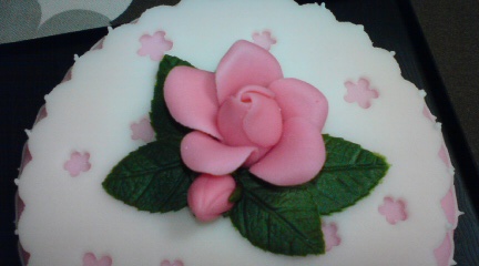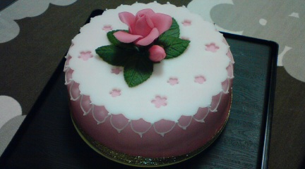 は、フルーツケーキをベースにシュガーペーストで覆い、 シュガーフラワー等で飾りを施した、豪華なシュガーケーキ3段