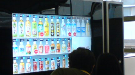 、普通にペットボトルに入った飲み物の自販機なんですが、商品サンプルが並んだ自販機ではなく、デジタル画像の自販機なんですっ